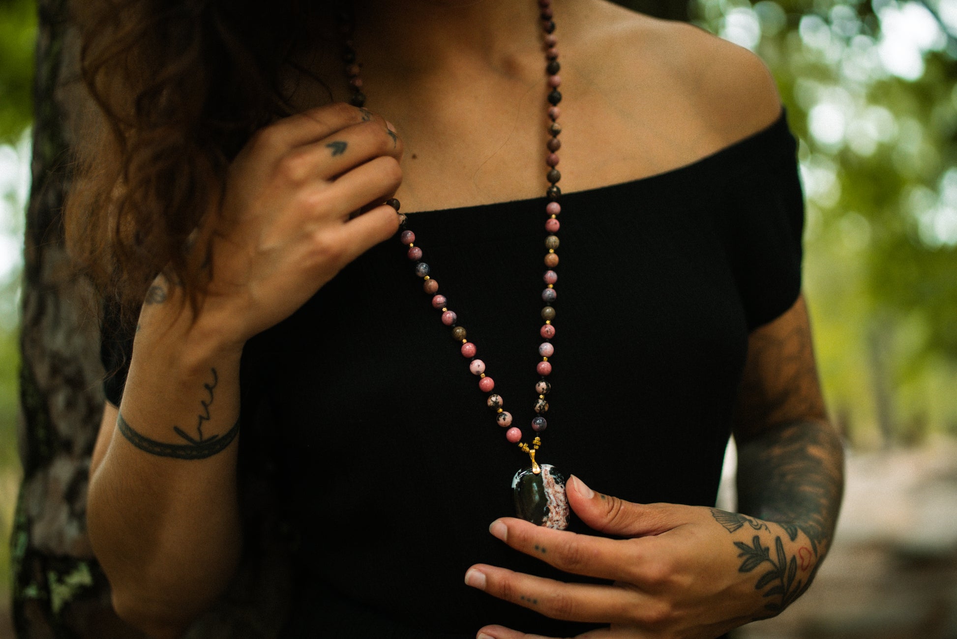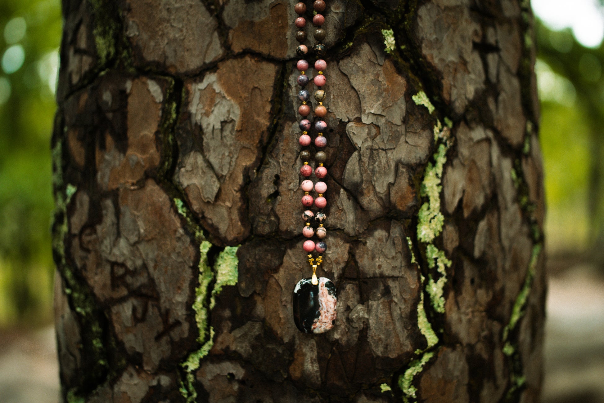 Sardonyx Pendant with Rhodonite Semi-Precious Beads & Gold Colored Accent Beads